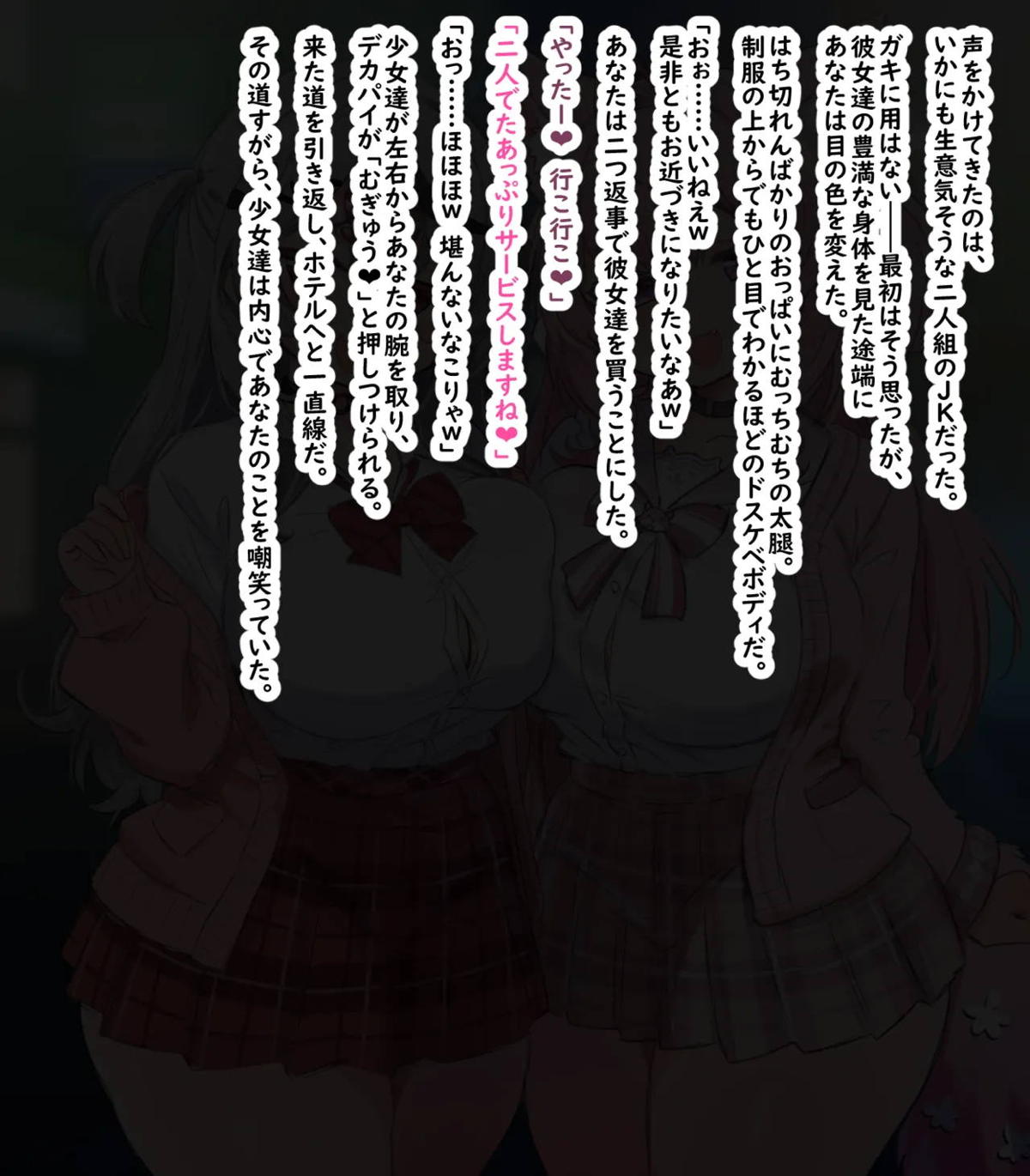 援交詐欺をたくらんだ生意気J◯達が処女ま◯こにお仕置きされちゃうノベルCG